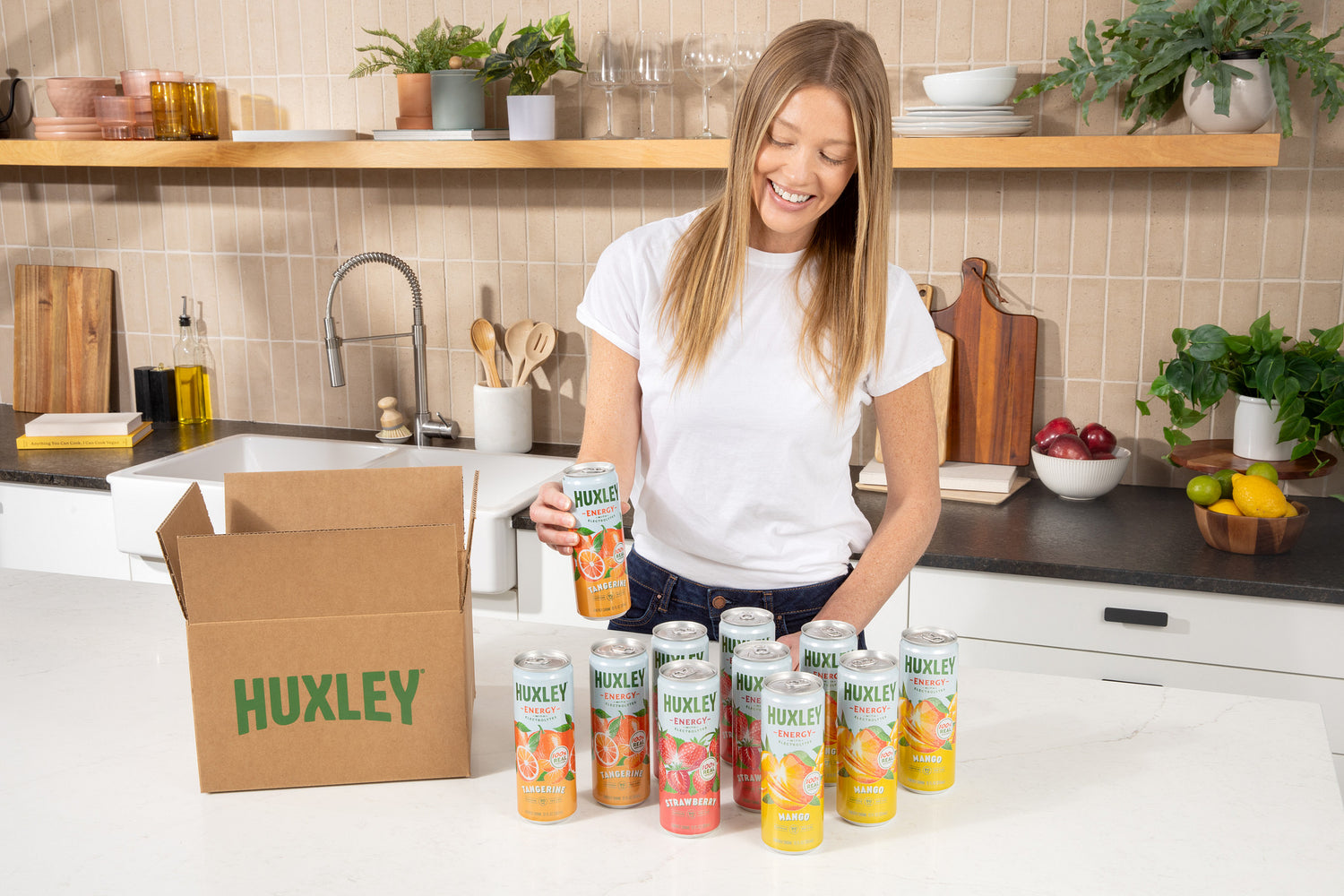 Huxley is powered by 90mg of plant-based caffeine. Each can delivers as much energy as one cup of coffee. Plus, it's boosted with electrolytes for hydration and L-theanine to reduce caffeine crash and enhance focus.